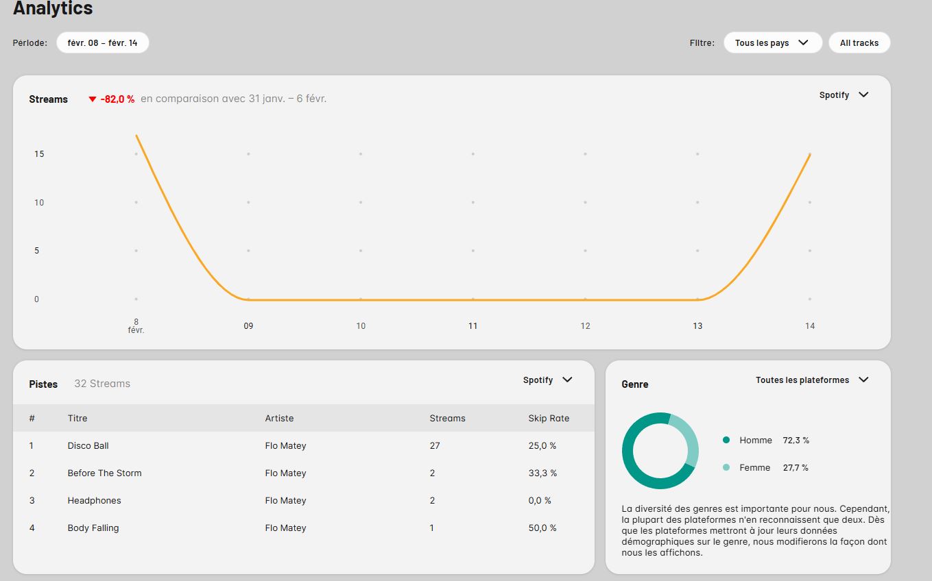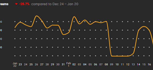 I just returned home (work trip, didn’t have internet), and see the analytics are back, but that period 9-12Feb is completely dead, not from lack of actual stream activity, as I know there were active listeners… Noting FloMatey had no streams over that period, am doubting the integrity of the data sent to you by platforms, and more users than use were probably affected…