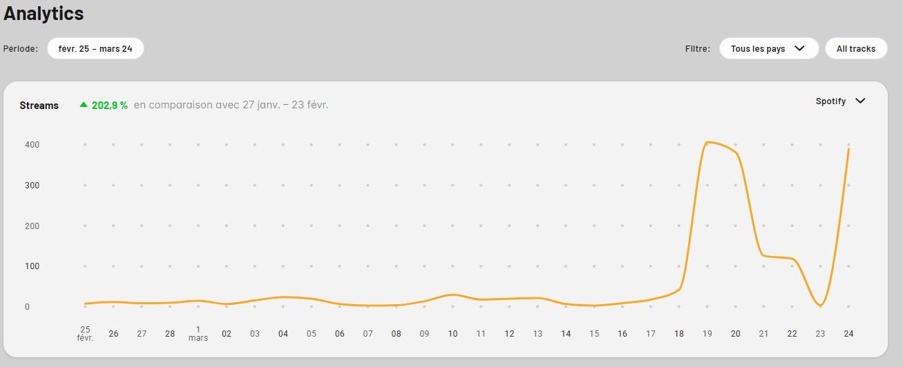 I’m still noticing some randomness with analytics recently, taking notes to compare with how it reflects in revenue, but just have to accept they are unreliable in absence of any transparency from the platform - just wish Spotify didn’t have the monopoly of promotion…