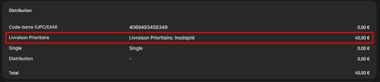 Ces frais correspondent aux livraisons Express et Prioritaire.