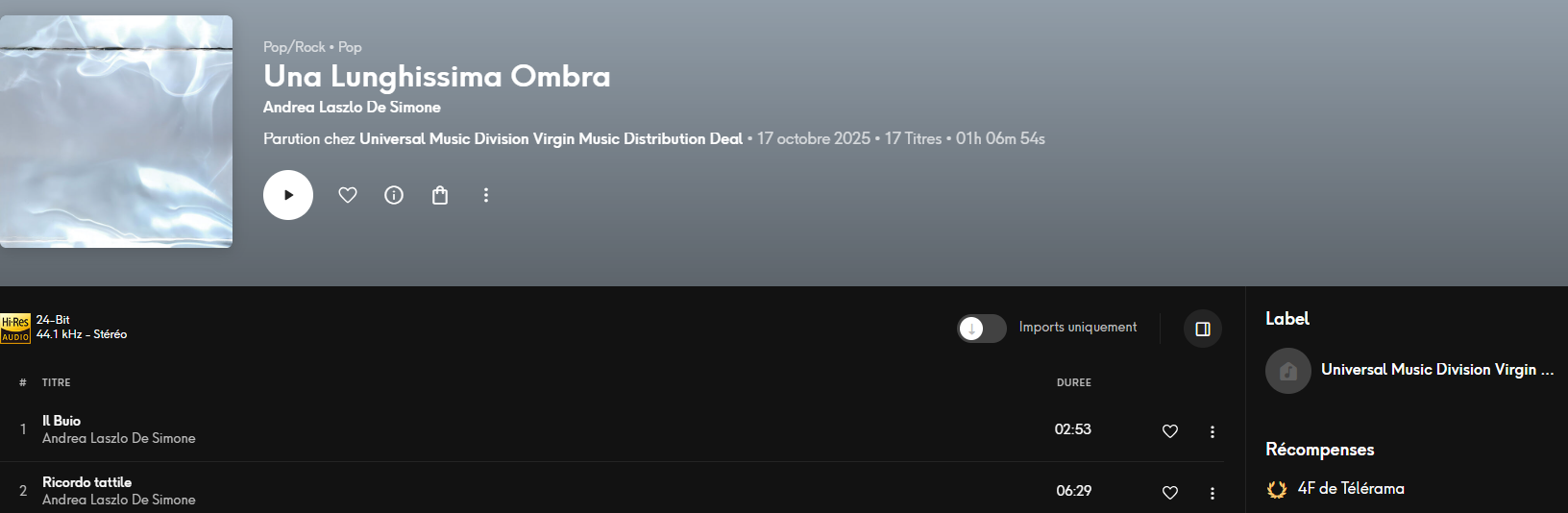 Merci Carlos ! Mais certaines plateformes de streaming affichent les récompenses obtenues par les albums : n’ont-elles pas été renseignées par la distribution ?