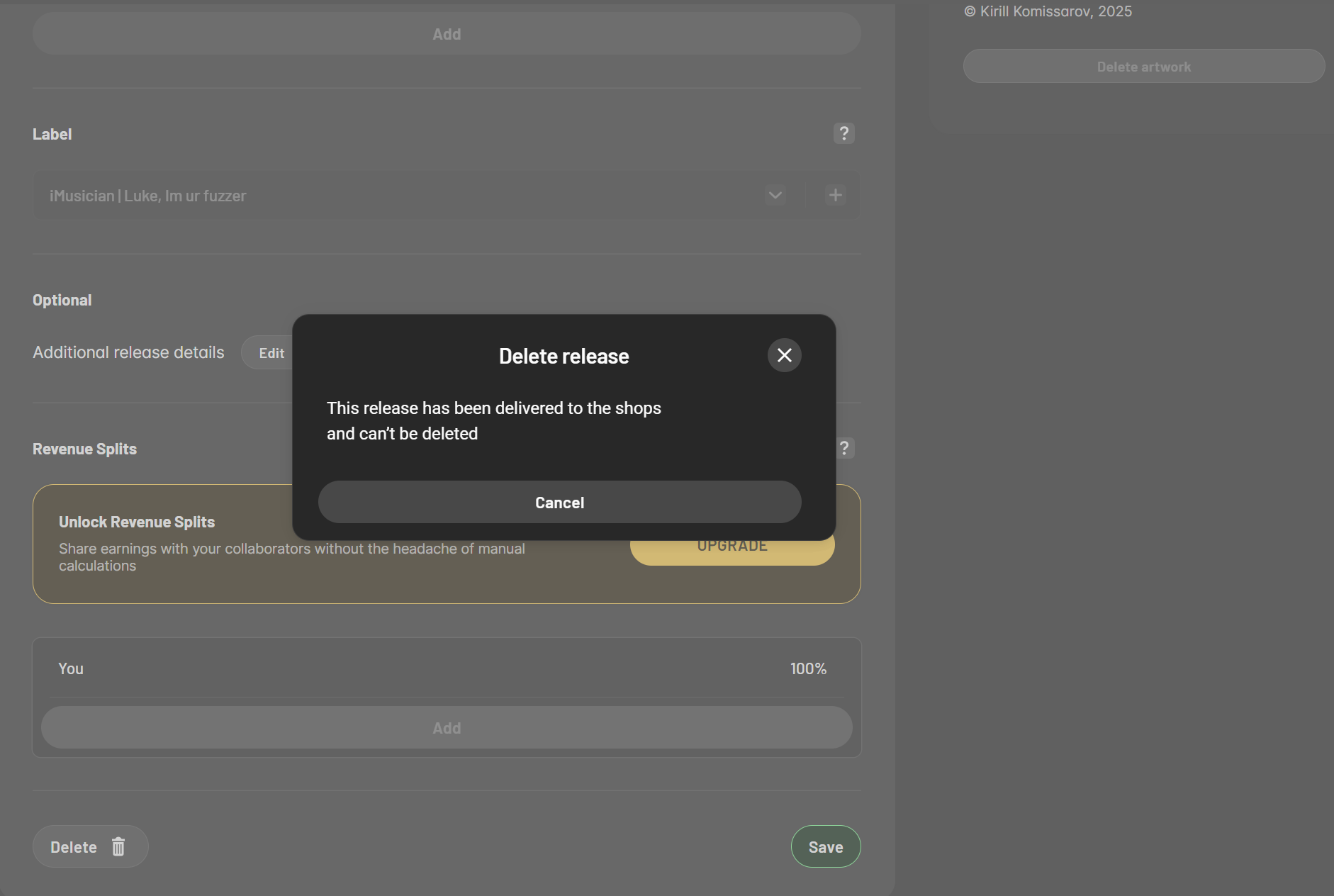 Could you please unlock or reset this release so I can upload the correct audio before completing payment?