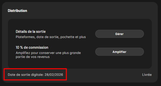Votre sortie a été livrée aux plateformes le 05 février et elle sera mise en ligne le 28, comme indiqué sur votre tableau de bord.