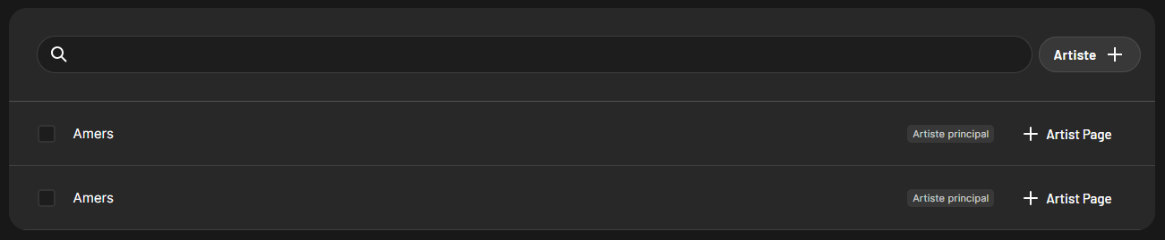 D’ailleurs, je vois sur votre tableau de bord iMusician que vous avez créé deux fois le même artiste et aucun n’est relié à un profil Spotify déjà existant.