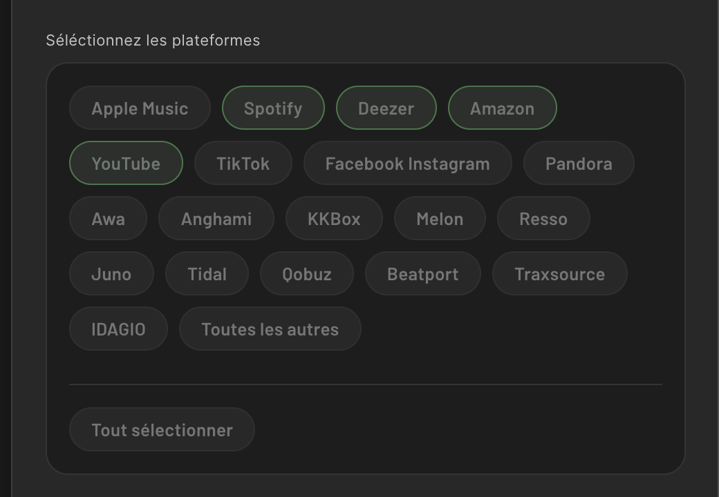 C’est normal, vous n’avez pas sélectionné Apple Music dans la liste de distribution de EAN 4066218849639 :