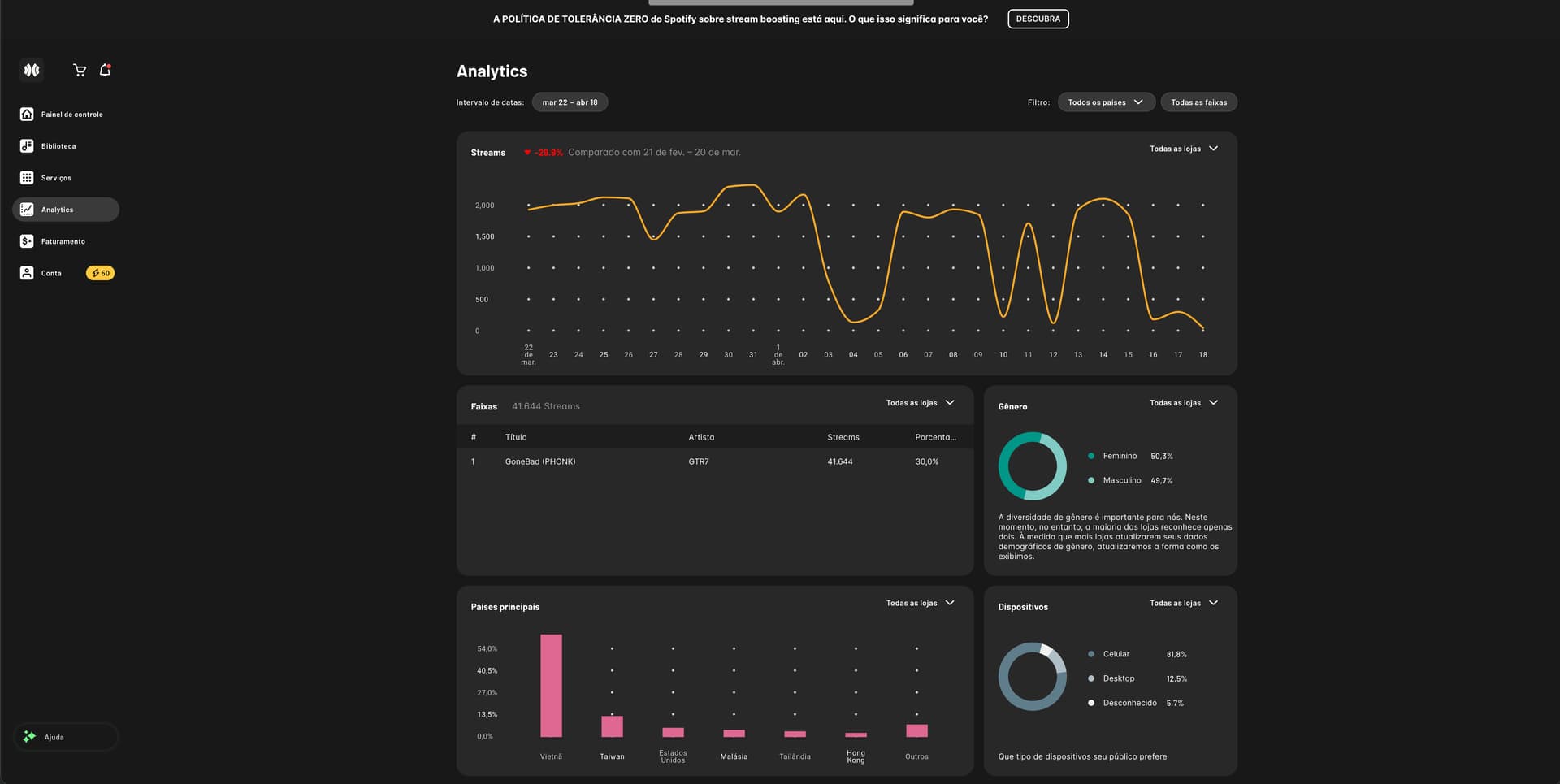 Thank you for letting me know. I have another question: why aren’t the reports showing up on Facebook and Instagram, and why is there nothing in the analytics about my music? It’s been almost 10 months and I still haven’t seen anything.